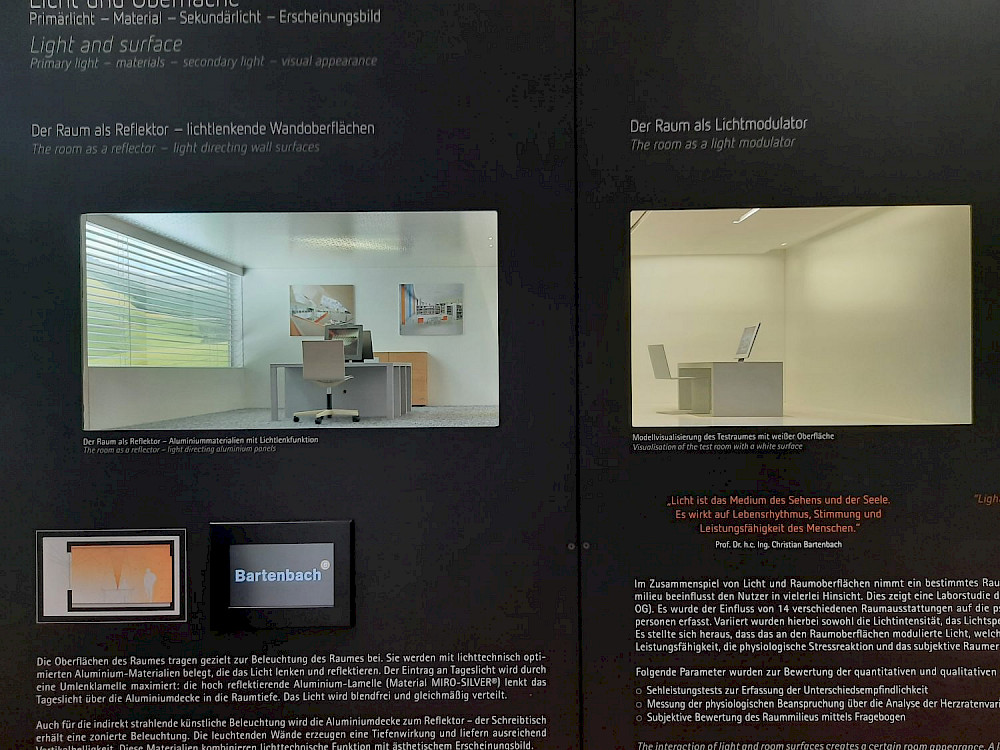 22.07.2021Wir waren zu Besuch bei unserem Partner Bartenbach in Innsbruck und haben uns vor Ort ein genaues Bild neuster Beleuchtungskonzepte und Technologien verschafft. Im persönlichen Gespräch mit dem Geschäftsführer Christian Bartenbach haben wir die Wahrnehmung von Licht, die Erfassung von Stimmungen durch den Menschen sowie technologische Ansätze im Sensorbereich diskutiert.
