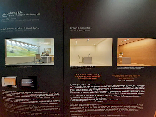 In der Lichtakademie konnten wir anschließend Licht auf Modellebene in verschiedene Raumsituationen erleben. Aufgrund unserer gemeinsamen Tätigkeit mit dem M Haus führen wir einen intensiven Austausch mit der Forschungsabteilung von Bartenbach. Dabei konnten Entwickler der Forschungsabteilung sehenswerte Einblicke in die Licht- sowie Sensorsteuerung geben.