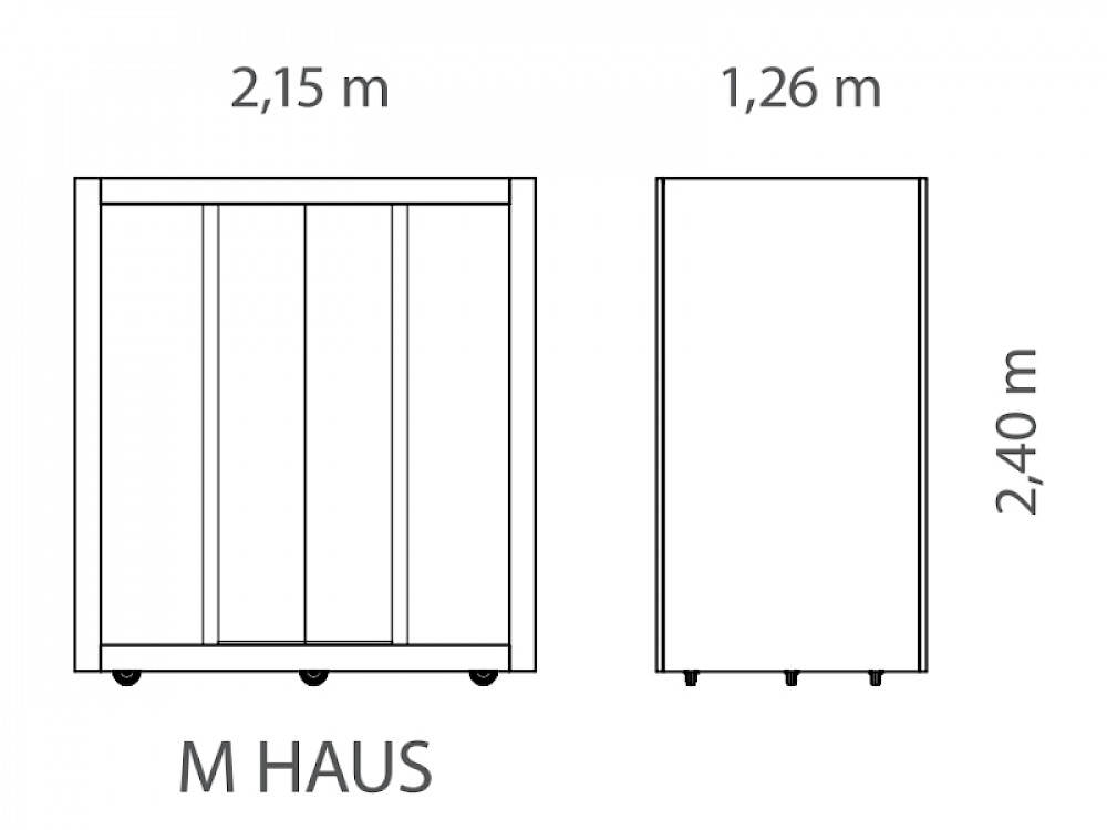 2,15 m breit, 1,26 m tief und 2,40 m hoch